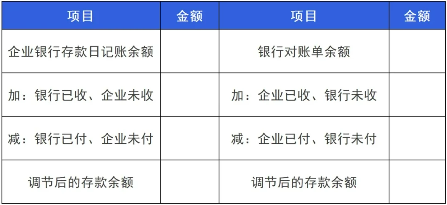 【提醒】银行存款余额调节表只是为了核对账目,不能作为调整企业银行存款账面记录的记账依据,实际的账务调整还是要根据企业收到的真实业务凭证来修改。
