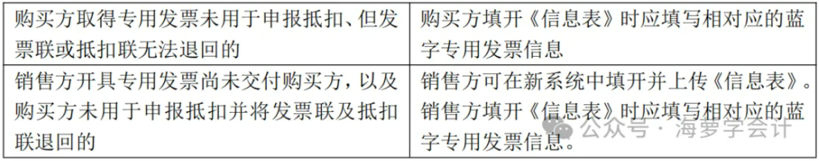 在填开《信息表》时不填写相对应的蓝字专用发票信息,应暂依《信息表》所列增值税税额从当期进项税额中转出,待取得销售方开具的红字专用发票后,与《信息表》一并作为记账凭证。