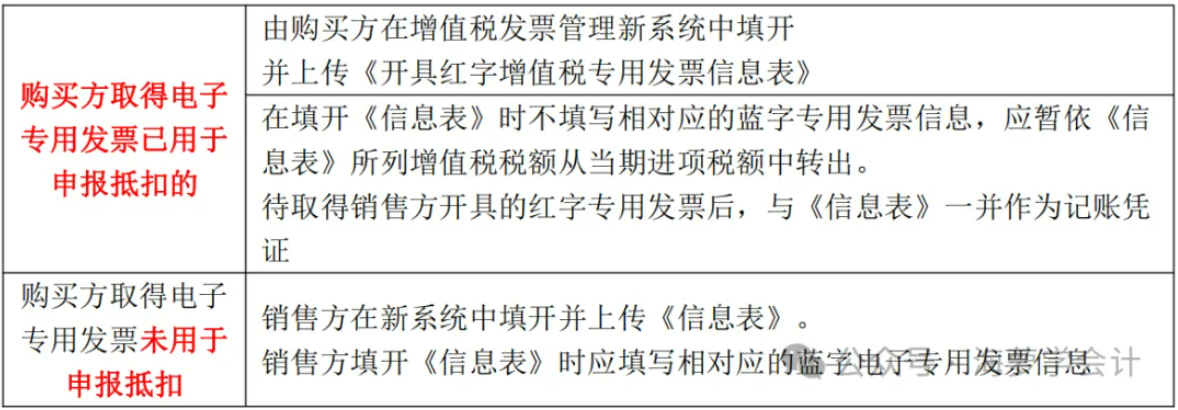①购买方取得专用发票已用于申报抵扣的,购买方可在增值税发票管理新系统中填开并上传《开具红字增值税专用发票信息表》。