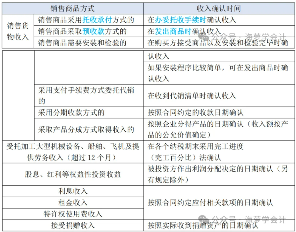 二、各类收入确认时间汇总