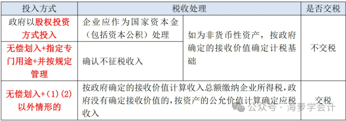 县级以上政府及其部门划入企业的资产,根据划入方式,所得税有三种处理方式:
