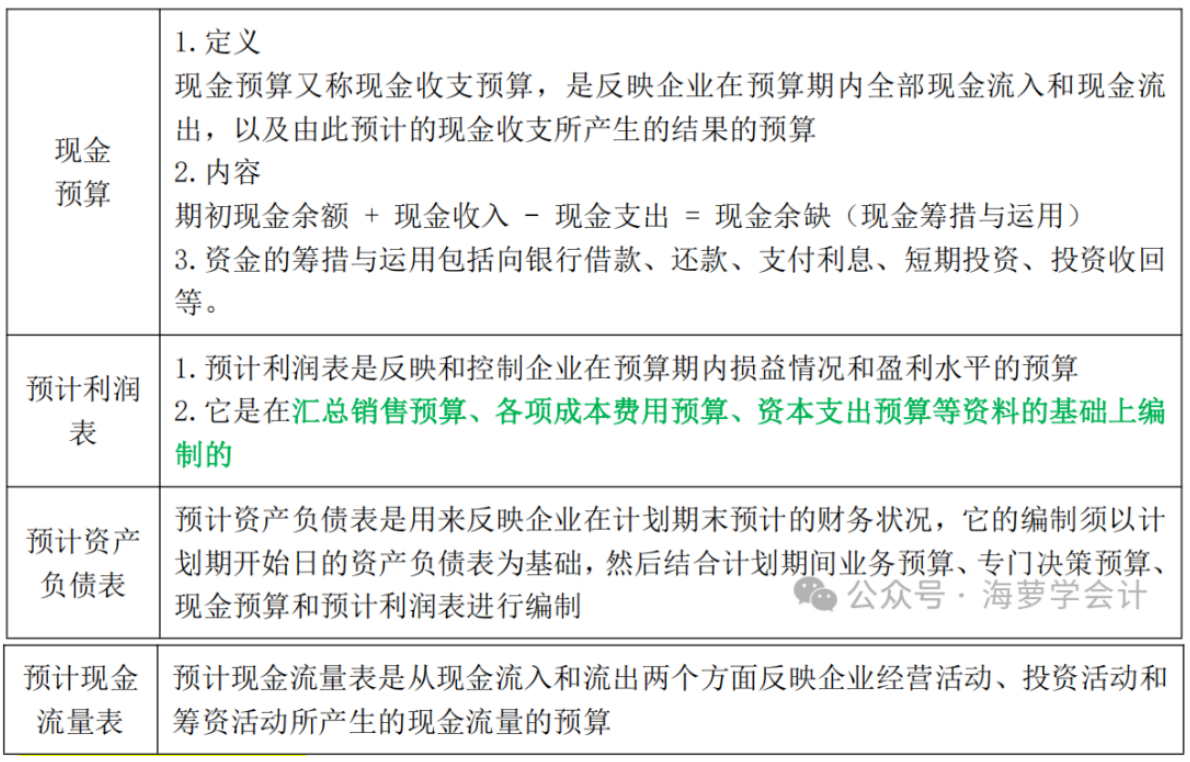 【财务会计】税务师第二章高频考点:财务预算的内容