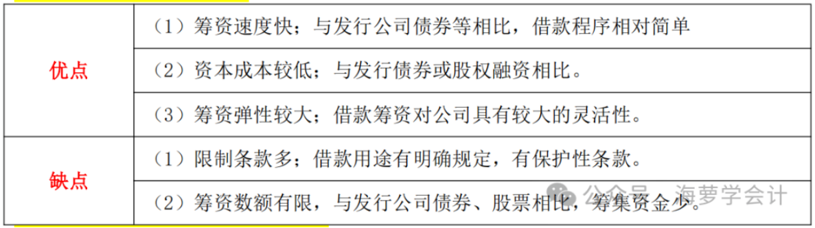 【财务会计】税务师第三章高频考点:银行借款优缺点