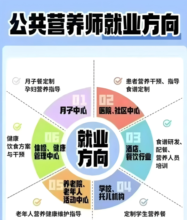 随着生活水平的提高和健康意识的增强,公共营养师的需求不断上升。目前,我国公共营养师的职业前景广阔,主要就业领域包括: