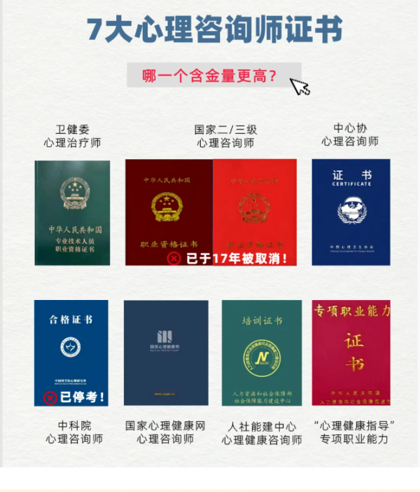 7大心理咨询师证书,哪一个含金量更高?